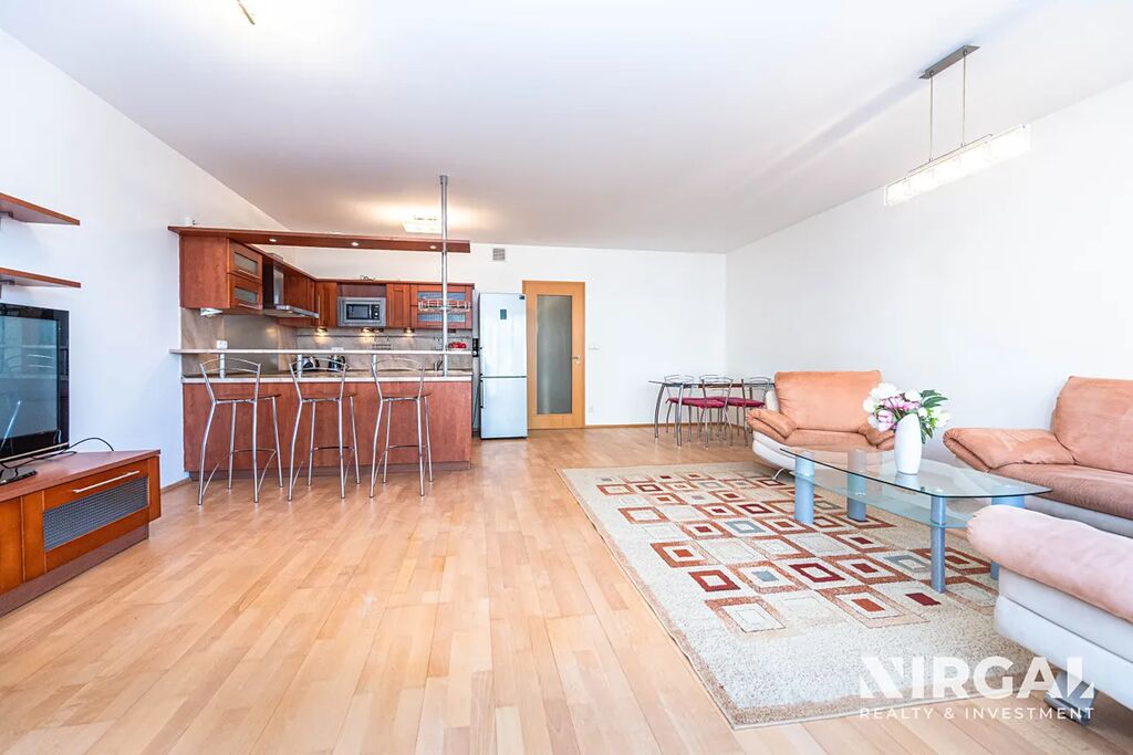 Interiér bytu je mimořádně světlý a vzdušný díky francouzským panoramatickým oknům a orientaci na dvě světové strany. K bytu náleží dva balkony (3 a 7 m²), které poskytují příjemný prostor k posezení. Prostorný obývací pokoj s plně vybavenou kuchyní, široké chodby, samostatné pokoje, komora, dvě koupelny, velká vana, kvalitní nábytek a vestavěné skříně – vše zde vytváří dokonalé podmínky pro pohodlné a elegantní bydlení. Byt je připravený k okamžitému nastěhování.