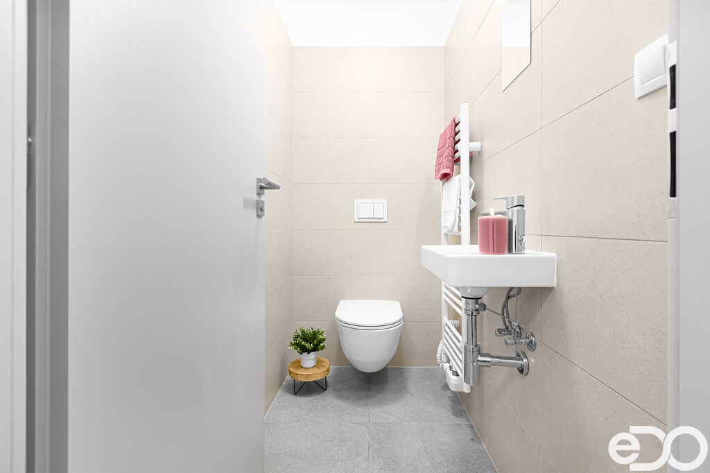 Velmi rád Vám v zastoupení majitele k prodeji nabízím exkluzivní a prostornou jednotku o dispozici 3+kk a podlahové ploše 87 m², která je kolaudována jako kancelář, avšak svou dispozicí, vybavením i provedením plně odpovídá modernímu bydlení. Jednotka je v osobním vlastnictví, nachází se v samostatně stojící skeletové novostavbě s výtahem a je součástí projektu Terasy Plzeňská, v pražské čtvrti Stodůlky. Jedná se o moderní terasovitou budovu s čistou architekturou, která svým stupňovitým usazením nabízí soukromí, dostatek světla a příjemné propojení interiéru s venkovním prostorem. K jednotce náleží terasa (10,7 m²) s navazující svahovitou předzahrádkou (12,8 m²), sklepní kóje (5,2 m²) a vlastní venkovní parkovací stání. Oficiálně je jednotka zapsána v 1. PP, nicméně díky terasovitému usazení domu je z úrovně hlavního vstupu situována v 2. nadzemním podlaží.