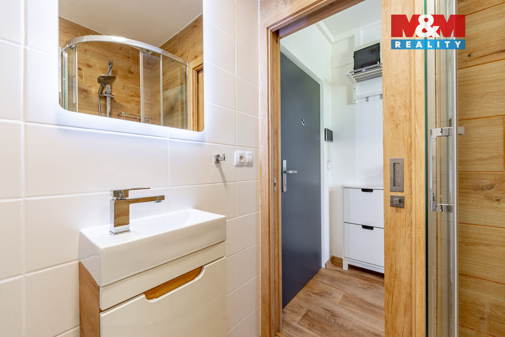 Byt je volný k nastěhování ihned a zůstane v něm k dispozici kuchyňská linka a vybavení koupelny.