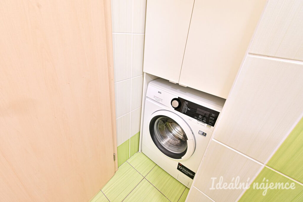 Byt se nabízí vybavený – vybavení zůstává dle fotografií. V kuchyni najdeme lednici, sporák s troubou, digestoř, myčku a lednici. Zbytek místnosti je vybaven jídelním stolem se židlemi. Koupelna disponuje sprchovým koutem, pračkou a umyvadlem se skříňkou. Toaleta je oddělena. V předsíni je praktická vestavěná skříň a lavice. Dva zcela oddělené pokoje jsou vybaveny vestavěnými skříněmi, gaučem, konferenčním stolkem, manželskou postelí a nočními stolky.