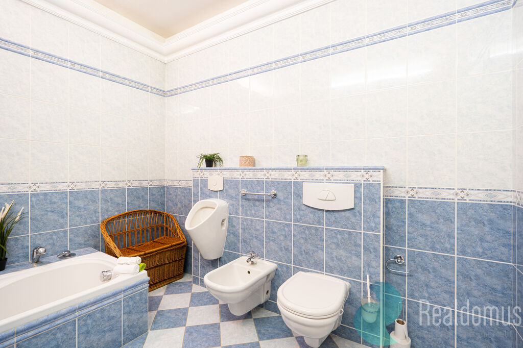 Ve druhém nadzemním podlaží se nachází prostorný a udržovaný byt 5+kk připravený k okamžitému nastěhování. Dispozici tvoří kuchyně s jídelním koutem a obývacím pokojem, ložnice, dva dětské pokoje a pracovna. Komfort zajišťují dvě koupelny – samostatná koupelna pro dětské pokoje a druhá přístupná z hlavní obytné části. Byt nevyžaduje okamžitou rekonstrukci.