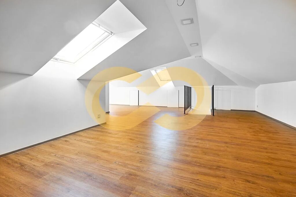 Kdyby vám to nestačilo, stačí po schodišti vystoupat do podkroví, kde je velký otevřený prostor. Z toho může být třeba parádní zázemí pro práci z domu.