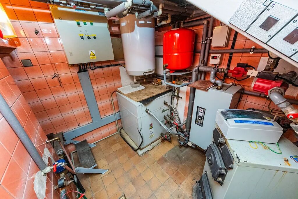 Budova má systém teplovodního topení, zdrojem tepla - tepelné čerpadlo (voda-voda) a nová plastová okna s dvojskly.