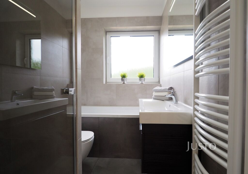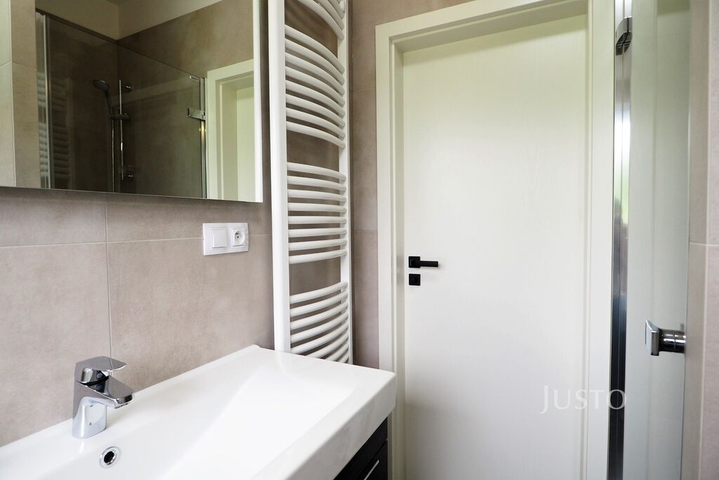 Byt se prodává včetně dokončených zařizovacích prvků – součástí ceny jsou vinylové podlahy, obklady a dlažba, nadstandardní sanitární vybavení GROHE včetně termostatických baterií a přípravy na bidetové WC, interiérové dveře včetně zárubní.