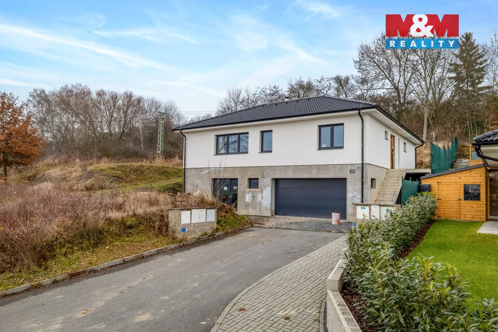 Kolem domu se rozprostírá prostorná zahrada s nádherným výhledem do okolí, která čeká na vybudování dle nového majitele. Dům je napojen na obecní vodovod i kanalizaci, vytápění zajišťuje podlahové topení a krbová vložka. Ohřev teplé vody přes plynový kotel. Nechybí příprava na fotovoltaiku ani venkovní žaluzie.