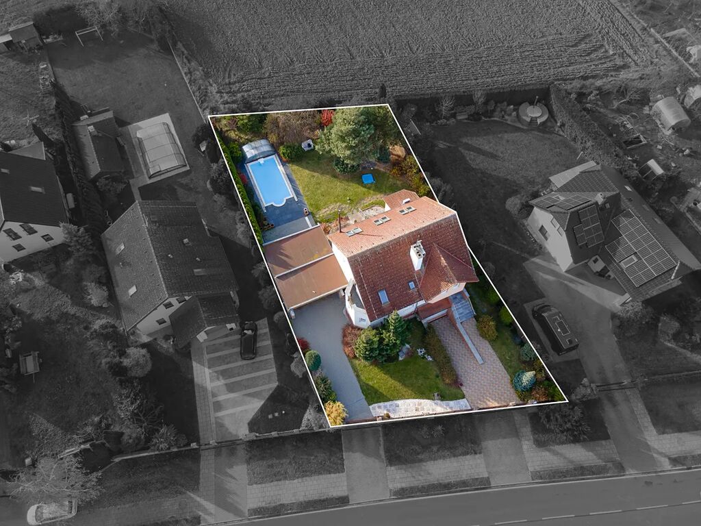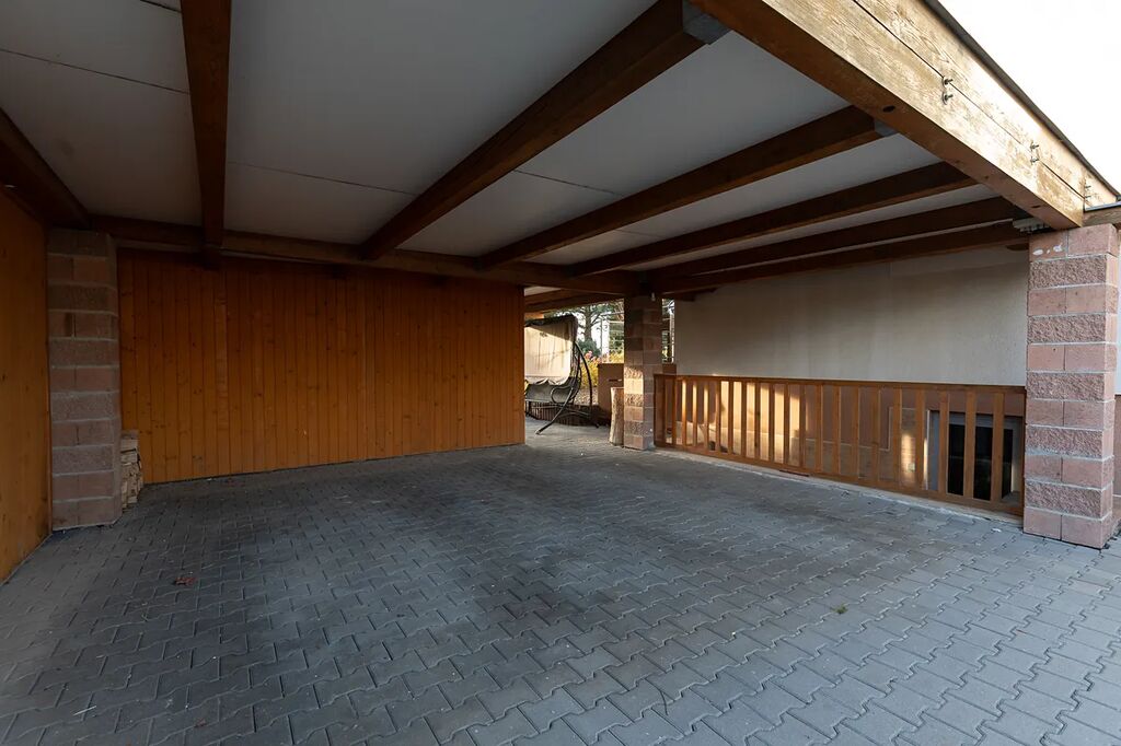 Prostorný rodinný dům s velkou zahradou, terasami, bazénem, venkovním krytým stáním pro dvě auta a garáží – ideální pro rodinu, která hledá nadstandardní bydlení.
