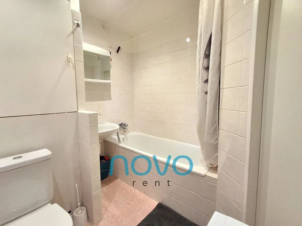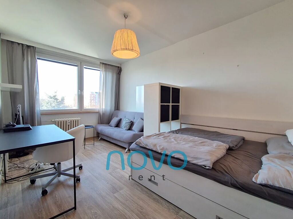 Dispozice bytu nabízí jednu samostatnou ložnici s velkou šatní skříní a postelí dále pak obývací pokoj s kuchyňským koutem. V koupelně naleznete vanu a zánovní pračku.