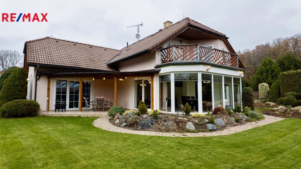 Nemovitost má dvě podlaží, v přízemí je dlažba s podlahovým vytápěním, v patře plovoucí podlahy a radiátory. K dispozici je vnitřní bazén, tři WC, dvě koupelny, tři klimatizace a plně vybavená kuchyně z masivu. V horním patře se nacházejí čtyři prosvětlené místnosti, z toho tři ložnice, a velká okna dodávají prostoru příjemně světlou atmosféru. Součástí domu je terasa, dva balkony a v interiéru se nachází i terárium.