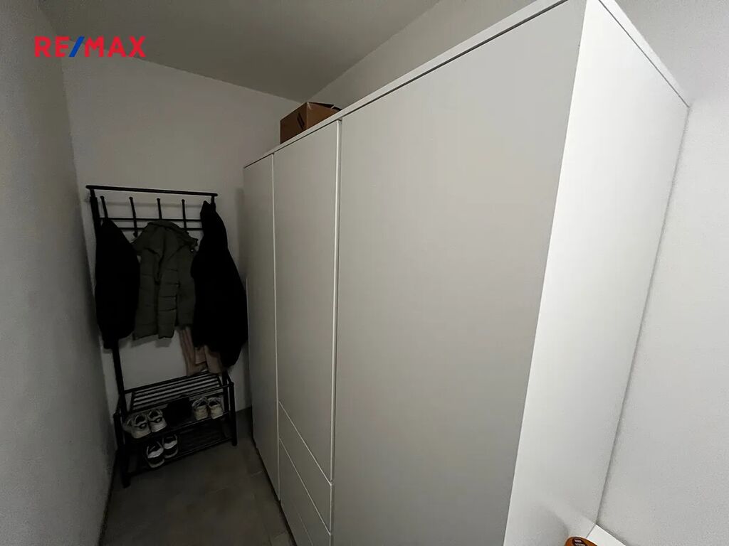 Byt má šikovnou dispozici. Za vstupem vlevo je prostor na šatnu, vpravo do prostorné koupelny s WC a sprchou a proti dveřím vstup do obytné části.