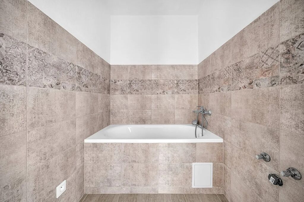 Nové podlahy, dveře a obklady v příjemných teplých barvách, doplňují prosluněné místnosti. V koupelně a na toaletě Vás zaujme decentní a zajímavý dekor obkladů. V koupelně není osazeno umyvadlo, stejně tak v kuchyni není kuchyňská linka, kterou si každý rád vybere podle svého vkusu. O toto nevybavení je ponížena prodejní cena bytu. (Nové el. rozvody v kuchyni jsou kompletně vyvedené...)