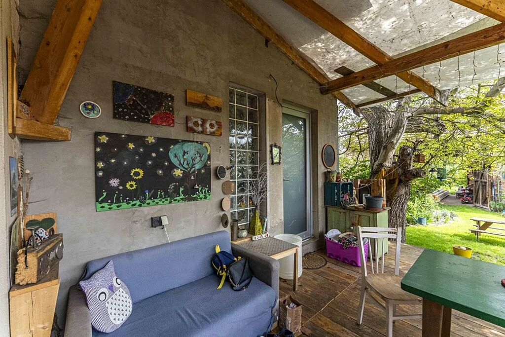 Na nádvoří domu se nachází zahrádka, které dominuje již zmíněný vzrostlý ořech. Je zde dodstatek prostoru, pro pěstování zeleniny, okrasných rostlin a i vyžití pro děti. Dále se zde nachází velkorysý přístřešek. Kolem zahrady se nachází obvodové zdi sousedních domů a stodoly, Na zahradě je rovněž studna.