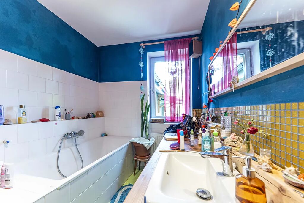- sklep (celkem cca 27 m2) má dvě části, novou s technickým zázemím, plynovým kotlem, vodárnou. Druhá část je původní s klenutými stropy.
