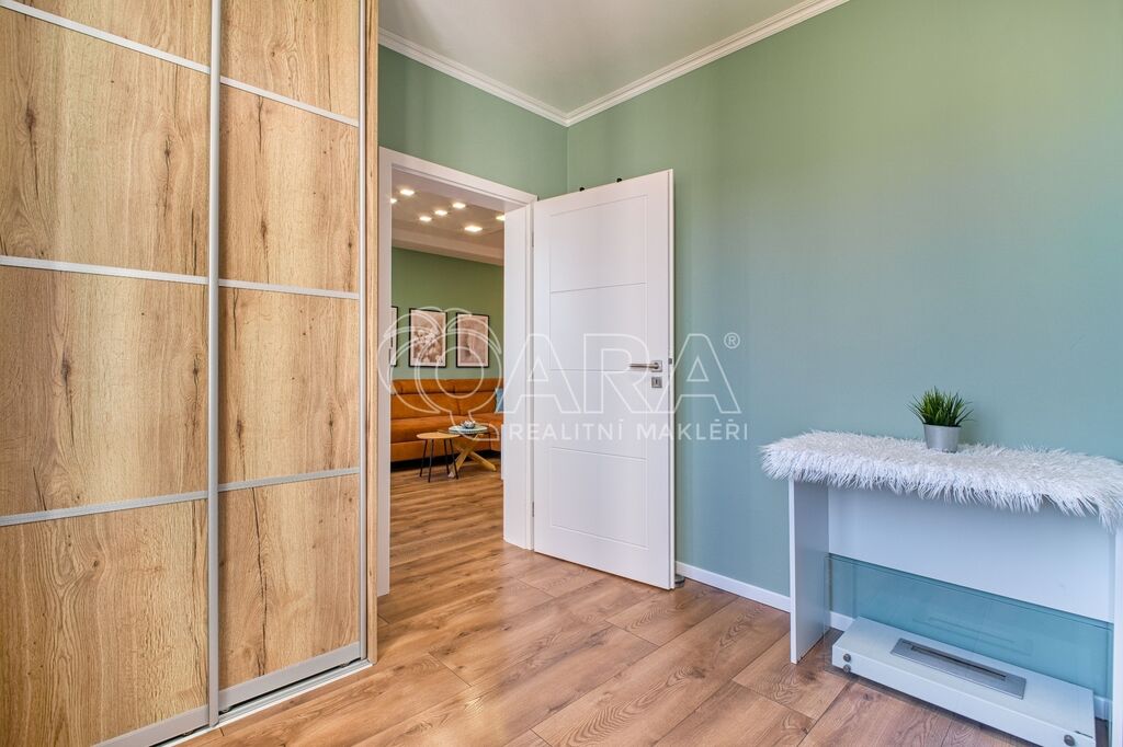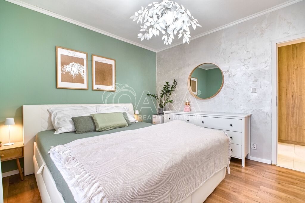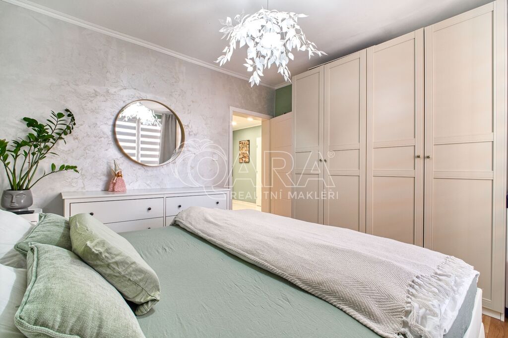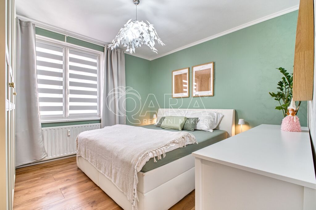 Zbytek bytu doplňují dvě útulné ložnice, které poskytnou dostatek prostoru pro ložnici i dětský pokoj.