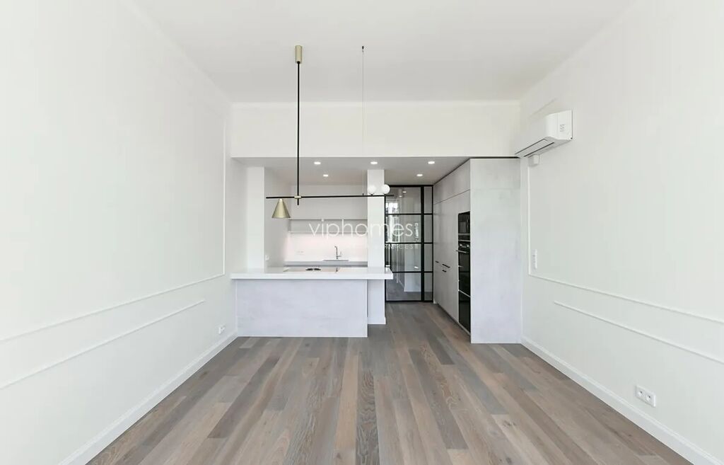 Interiér bytu o velikosti 93 m2 tvoří obývací pokoj moderně propojený s kuchyní, 2 prostorově velkorysé ložnice, 2 minimalisticky pojaté koupelny, technické zázemí. Klimatizace, dřevěné dubové podlahy, pračka/sušička, vestavěné skříně, nová okna s dvouvrstvým sklem, internet.