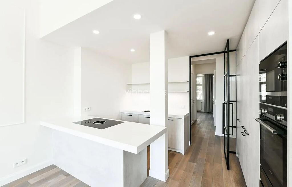 Zařízený, klimatizovaný byt ve 4. patře kompletně zrekonstruované činžovní budovy v secesním stylu, v jedné z nejžádanějších částí Prahy, přímo na Náměstí Jiřího z Poděbrad. Budete okouzleni výhledem na avantgardní architektonickou stavbu kostela Nejsvětějšího srdce Páně, osobité dílo slovinského architekta Jože Plečnika a celé náměstí s typickou energií a atmosférou Vinohrad. Najdete zde jak významná nákupní centra např. Palác Flóra a Vinohradský pavilon pro Vaše pohodlné nákupy, tak i divadla (Divadlo na Vinohradech, Smetanovo divadlo), parky a vyhlídky, možnosti k posezení v četných restauracích a kavárnách. Farmářské trhy jsou neoddělitelnou součástí života v této čtvrti a svou atmosférou lákají obyvatele celé Prahy k pravidelné návštěvě. Díky výhodnému dopravnímu spojení se brzy dostanete do samotného centra města, ale i za jeho hranice, a to jak automobilem tak MHD. Stanice metra A .