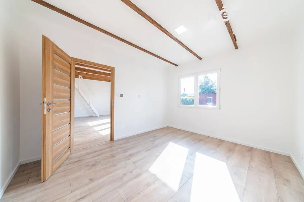 Nyní jsou obě poloviny ve stavu vyžadující kompletní rekonstrukci. A můžou vypadat právě tak, jak vidíte na těchto fotkách. Ty jsou z identického dvojdomku, respektive z jeho poloviny, která už má realizaci za sebou. Budoucí dispozice každé poloviny může být řešena jako 3+kk s dvěma horními prostory.