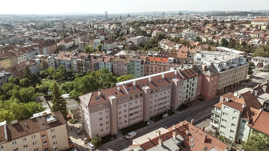Nový prostorný byt 4+kk s balkonem s panoramatickým výhledem na jih Brna, v 5. nadzemním podlaží (ze 6) bytového domu v Černých Polích. Byt v osobním vlastnictví má užitnou plochu 75 m2 (podlahová plochy činí 82 m2), k tomu navíc balkon o ploše 7 m2, orientovaný do klidného vnitrobloku a sklep o ploše 2 m2. Byt je součástí zcela nové nástavby dvou podlaží domu v Provazníkově ulici. Má pravidelnou a vzdušnou dispozicí s praktickou vstupní halou. Obytné místnosti jsou neprůchozí - s výjimkou velkého obývacího pokoje (27 m2), ze kterého se vstupuje do jedné z ložnic a na balkon. Koupelna (se sprchovým koutem) je vybavená dvěma umyvadly, WC je samostatné. Pokoj a jedna z ložnic jsou orientovány na jih, do klidného vnitrobloku, dvě ložnice a koupelna jsou situovány severně.