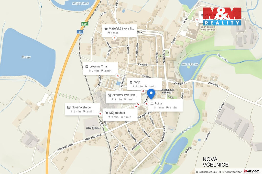 Byt se nachází v klidné části Nové Včelnice jen pár kroků od Masarykova náměstí, v blízkosti obchodů, lékárny, autobusové zastávky, ZŠ, sportovišť a příjemných procházek kolem Zámeckého rybníka. Termín nastěhování je možný po dohodě.