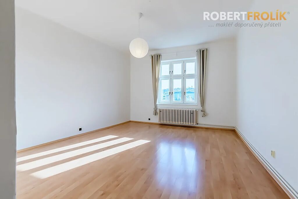 Obě hlavní místnosti jsou otočené na jih, směrem k parku Kajetánka. Mají už nová dřevěná eurookna s dvojskly. V kuchyni jsou ještě původní špaletová okna. Kuchyňská linka a koupelna je už letitá, ale když si pár let počkáte, majitel vám obojí postupně zrekonstruuje.