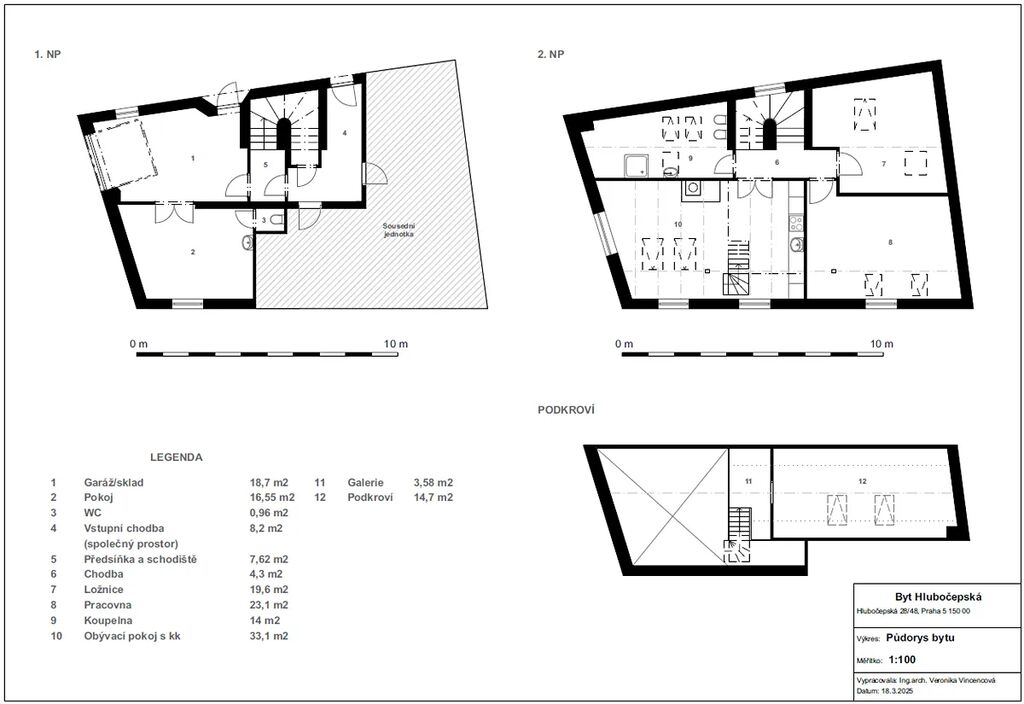 Dům se sestává ze 3 jednotek, z nichž předmětem prodeje jsou 2 jednotky v domě o velikosti 156 m2, které mohou být užívány odděleně nebo společně.