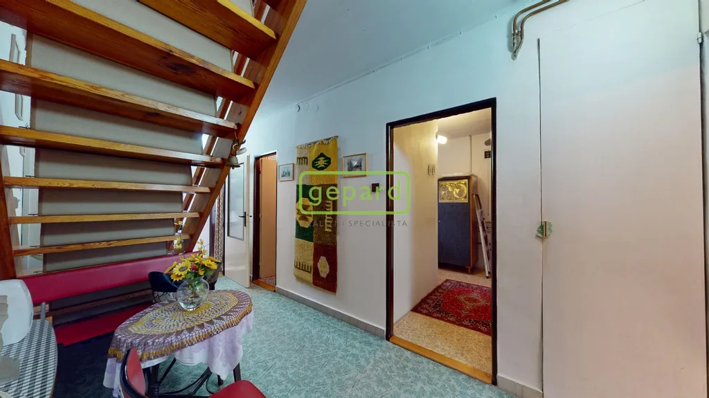 Jedná se o řadový rodinný dům o velikosti cca 150 m2 na pozemku o celkové ploše 361 m2. V přízemí domu projdeme od vstupních dveří chodbou do obývacího pokoje a z něho dále do kuchyně, ze které je vstup plastovými dveřmi na zahradu. S chodby jsou postupně vstupy do menší koupelny s WC, do komory ve které se nachází plynový kotel, který je rok starý a dále přímo s chodby je průchod do garáže, což oceníte hlavně při sychravém počasí. Po krásných dřevěných schodech se dostaneme do prvního patra, kde se nachází proti schodům dva prostorné pokoje, každý se vstupem do lodžie, dále projdeme chodbou do třetího pokoje s okny do ulice. V patře je též samostatné WC a veliká koupelna s rohovou vanou.