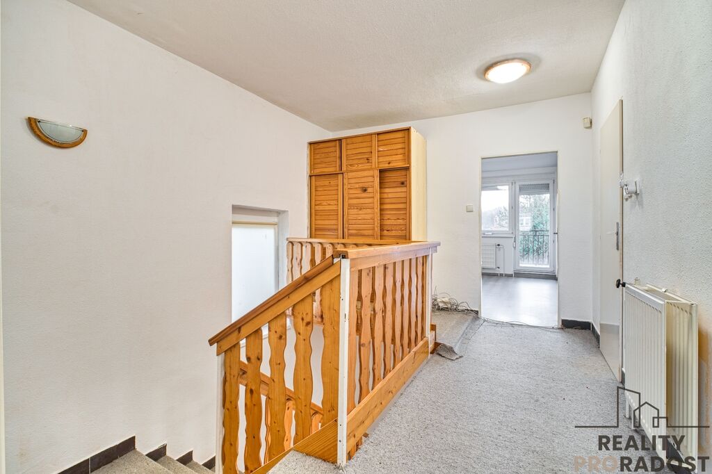 Prodej dvoupodlažního bytu, který je řešen jako krajní řadový dům s vlastní zahradou. Jednotka o dispozici 4+1 se 2 balkóny, komorou, vlastní garáží a zahradou o velikosti 1026 m2 se nachází na konci slepé ulice v Prostřední Suché. Z jednotky lze vystoupit na vlastní nesdílenou oplocenou zahradu, která nabízí maximální soukromí. Na zahradu se vstupuje z obývacího pokoje, nachází se zde zastřešení s posezením, kotec pro psy, zahradní domek. Posezení je oploceno gabiony a betonovým plotem pro naprosté soukromí a klid.