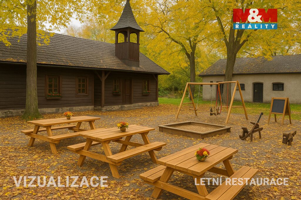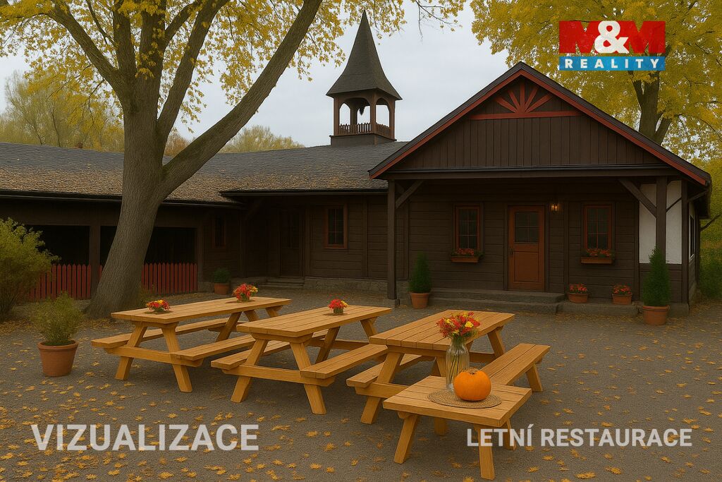 Na přilehlém pozemku o výměře 811 m² se nachází samostatná stavba, která dříve fungovala jako úspěšná letní restaurace s venkovním posezením. Objekt nabízí široké možnosti využití – od obnovení provozu, přes výdejní místo, showroom, kanceláře, až po přestavbu na obytný nebo multifunkční prostor.