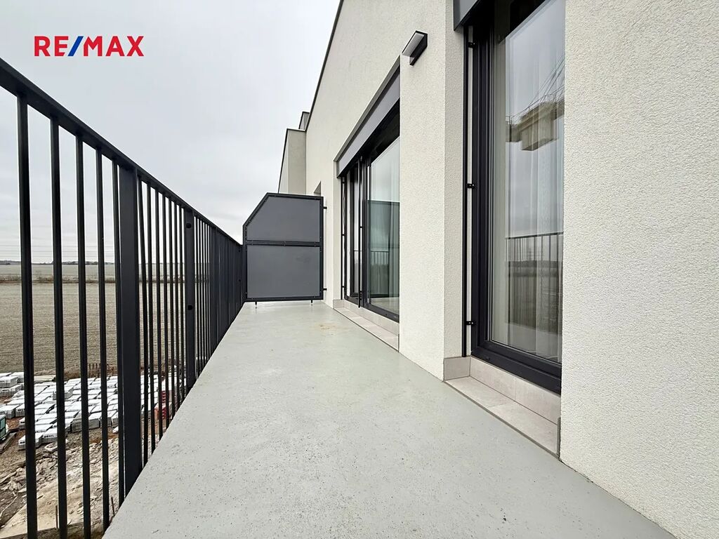 Prostorný balkon orientovaný do klidné části – ideální pro relaxaci, posezení i pěstování zeleně.