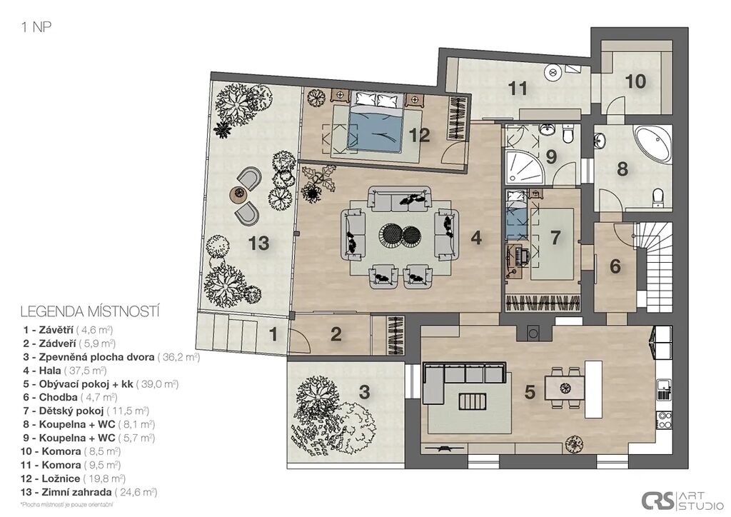 • dispozici 6+kk včetně pracovny nebo dětského pokoje navíc