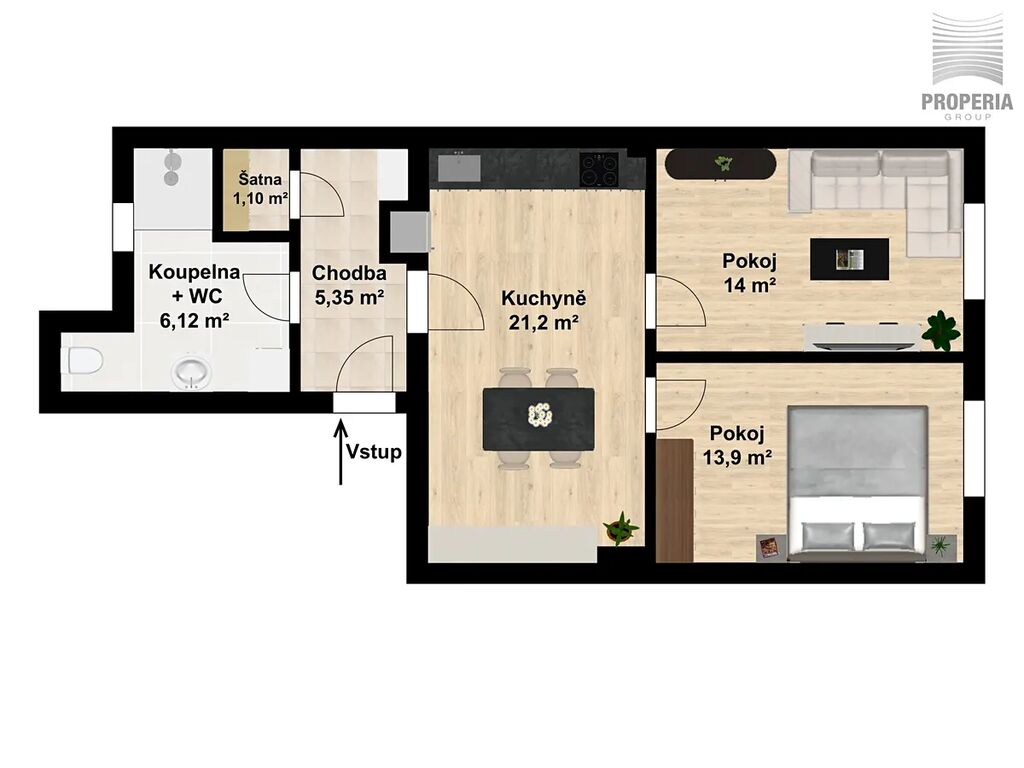 Součástí bytu není kuchyňská linka, kterou si každý může vybrat dle svého vkusu. Finální omítky jsou sádrová stěrka s malbou do bíla, zásuvky a vypínače TANGO. Světla nejsou dodávkou.