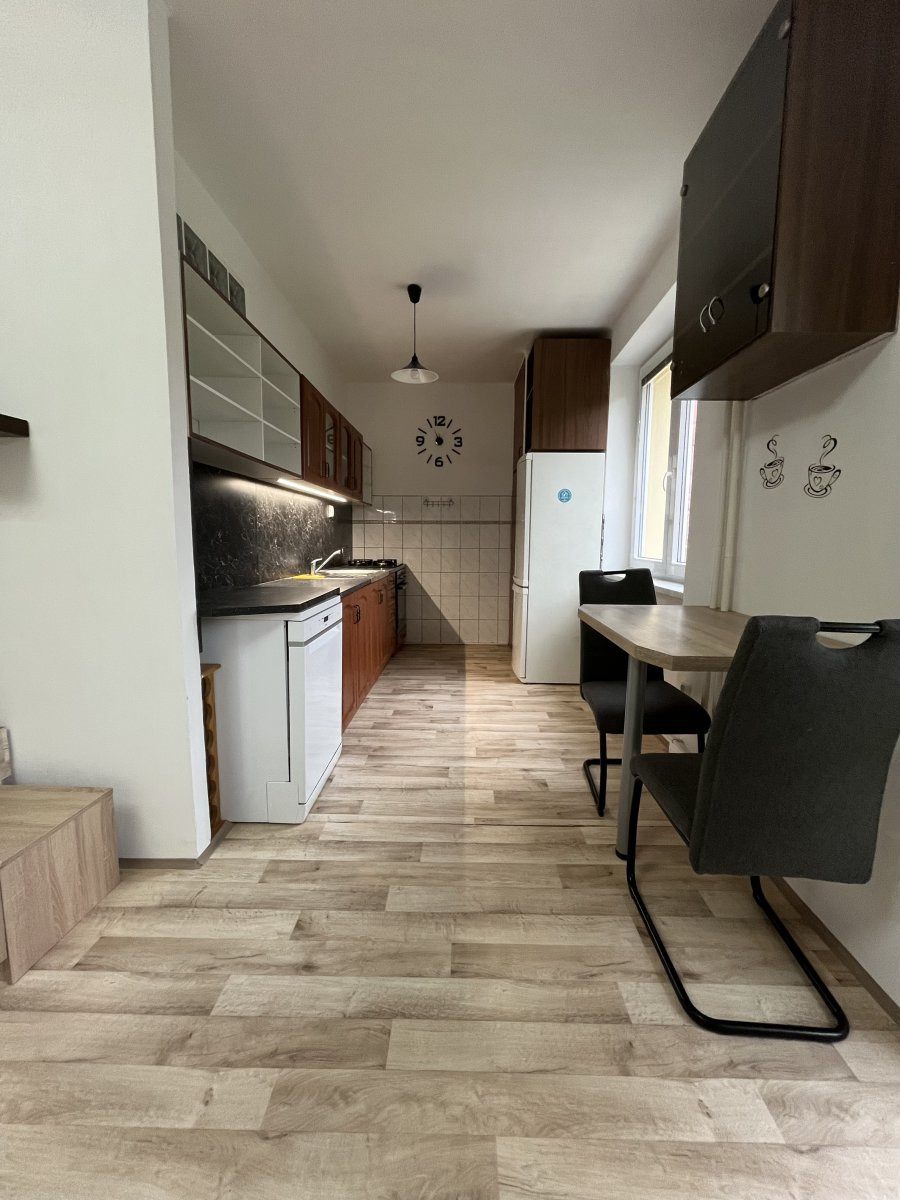 Byt se nabízí částečně vybavený. Kuchyně disponuje elektrickou troubou, plynovým sporákem, myčkou a lednicí.