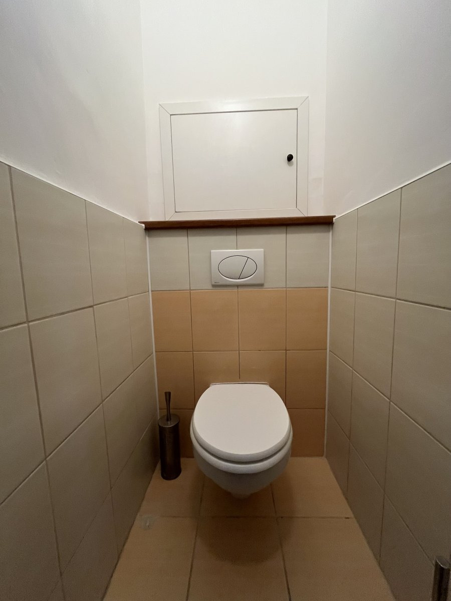 Jeden z pokjů je neprůchozí, V koupelně najdeme vanu a pračku. Toaleta je umístěny samostatně.