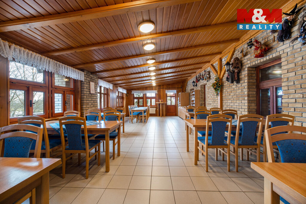 Gastronomie: Vyhlášená restaurace s kapacitou 200 míst (vnitřní sál, salonek, venkovní bar s grilem u jezírka) , s dvěma vybavenými kuchyněmi.