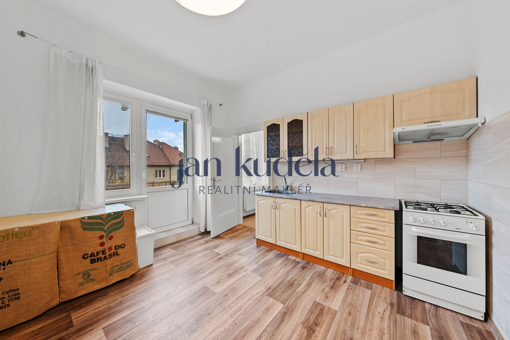 Při vstupu do bytu se nacházíte v prostorné chodbě, ze které je přístup do koupelny, samostatné toalety a kuchyně s výstupem na balkon. Z kuchyně dále vede vstup do menšího pokoje o výměře 8,7 m². Z chodby se vstupuje také do dvou velkých pokojů o velikosti 23,1 m² a 21,8 m², které jsou mezi sebou propojeny dveřmi – je tedy možné je využít jako průchozí nebo zcela oddělené.