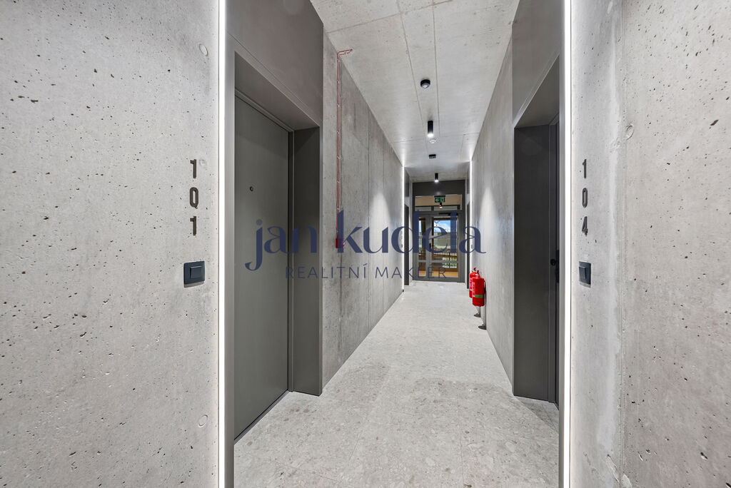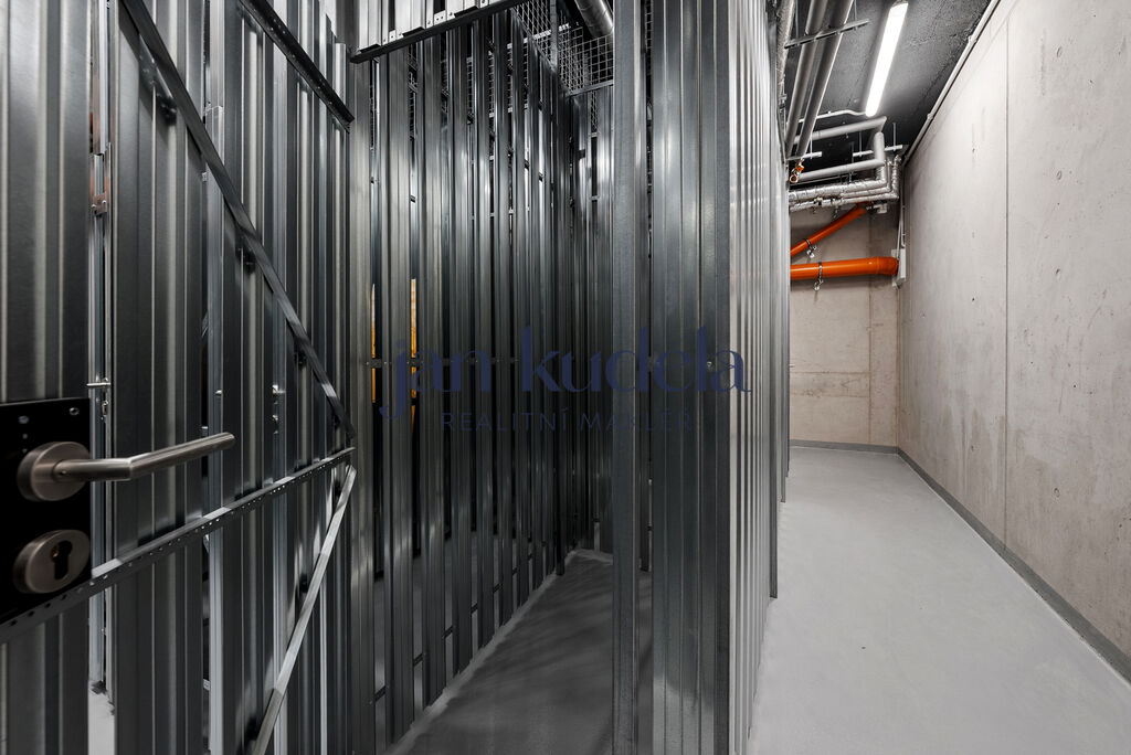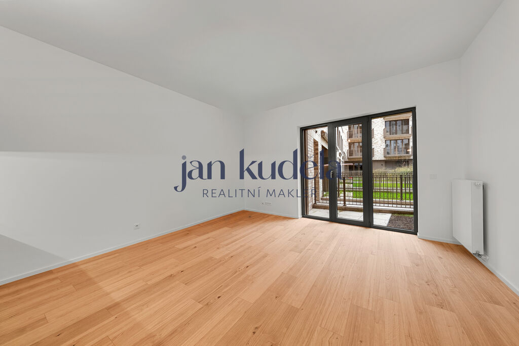 Byt je tvořen obytnou místností s kuchyňským koutem a vstupem na předzahrádku, dále koupelnou se sprchovým koutem a toaletou. K bytu náleží také sklepní kóje. Možnost pronájmu parkovacího místa přímo v domě.