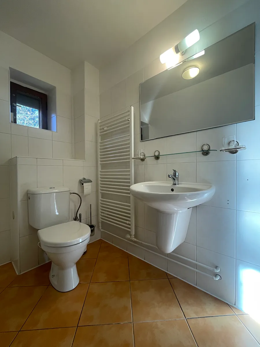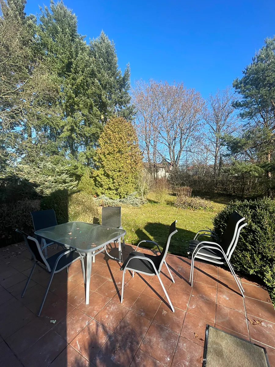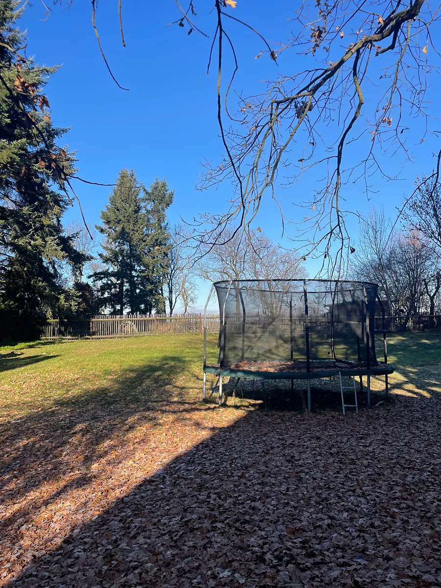 Tento výjimečný rodinný dům k pronájmu ve Zvoli nabízí vše, co si můžete přát – prostor, klid, přírodu i perfektní zázemí pro rodinu. Na nádherném pozemku o rozloze 2 904 m² stojí tři samostatné stavby: hlavní dům, garáž a praktická kůlna. Celý pozemek je osázen vzrostlými stromy, pečlivě udržovaný a poskytuje dokonalé soukromí. Děti si zde užijí velkou hrací plochu i trampolínu, dospělí ocení prostornou terasu s posezením, odkud je krásný výhled do zeleně a stromořadí.