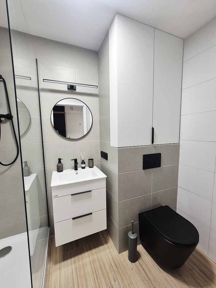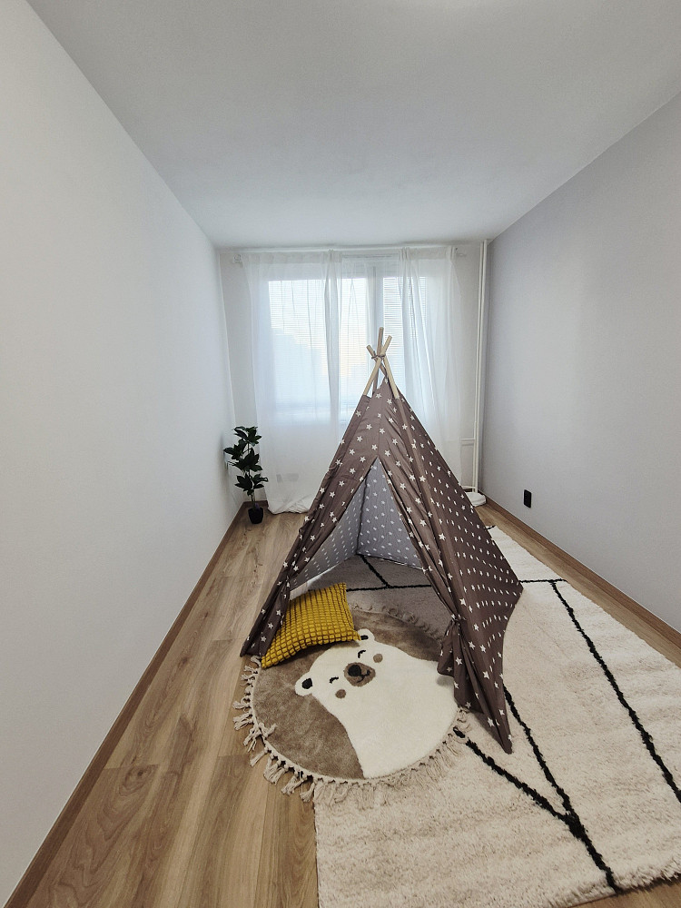 Byt je po kompletní rekonstrukci (11/2025) navržené architektkou, kdy byla provedena celková změna dispozice a při které se myslelo na každý detail. V celém bytě položena kvalitní laminátová německá Meister podlaha, dále nová kuchyňská linka na míru vč. vestavné kvalitní lednice, myčky, horkovzdušné trouby, sklokeramické varné desky, digestoře a granitového dřezu, nová koupelna se sprchovým koutem, závěsným WC, dále vestavěný nábytek na míru v chodbě, ložnici, obývacím pokoji, koupelně, nové štukové omítky, elektroinstalace v mědi, nové rozvody odpadů, vody, interiérové dveře s obložkami, LED osvětlení, nové bezpečnostní a protipožární vchodové dveře s třídou ochrany 3. Odpad v kuchyni zajišťuje přečerpávací stanice Grundfos. V bytě příprava na internet. Příprava na pračku/sušičku je v samostatné vestavné skříni u kuchyňské linky. V bytě dostatek úložných prostor a možnost variability s umístěním ložnice a dětského pokoje/pracovny (do obou ložnic se vejde manželská postel). Vytápění a ohřev TUV je řešeno dálkově. Všechny kuchyňské spotřebiče se záručním listem (4 roky). Byt je prodáván včetně veškerého vybavení, které je již v ceně. V bytě po rekonstrukci nikdo nebydlel.