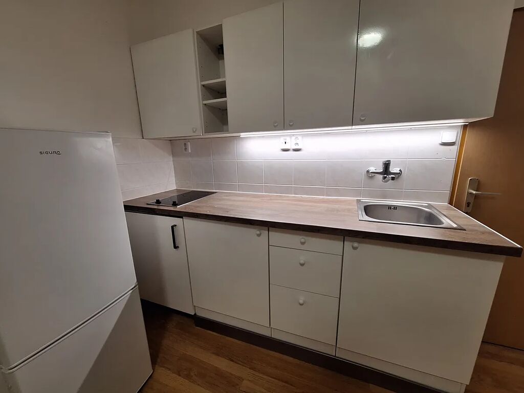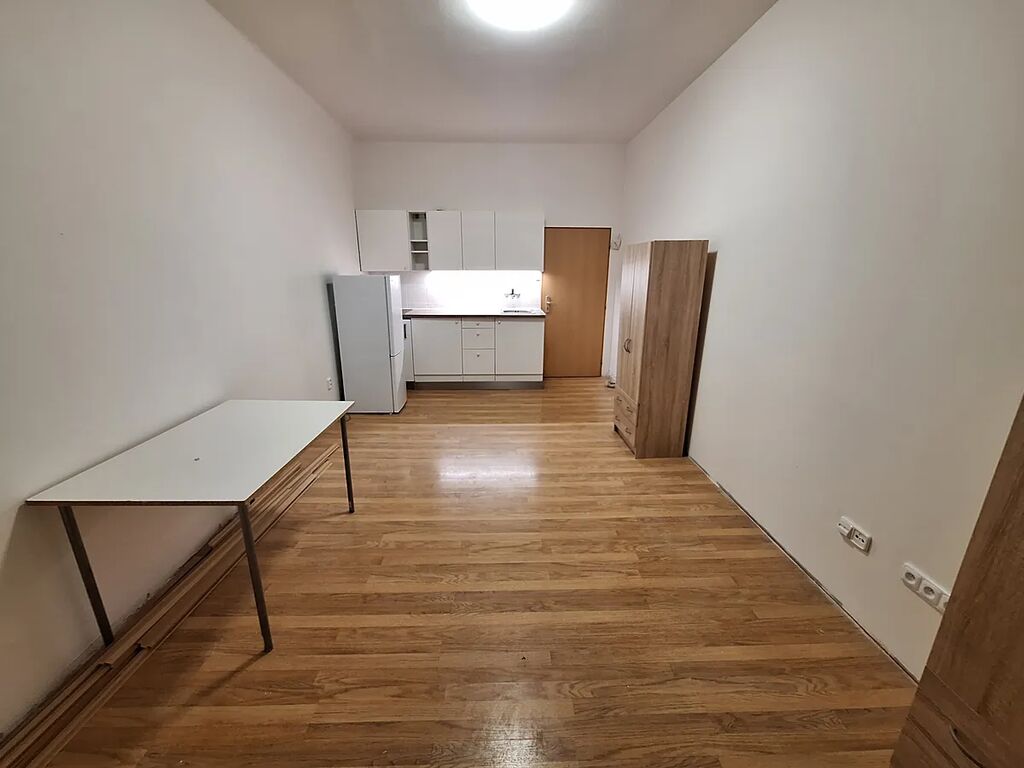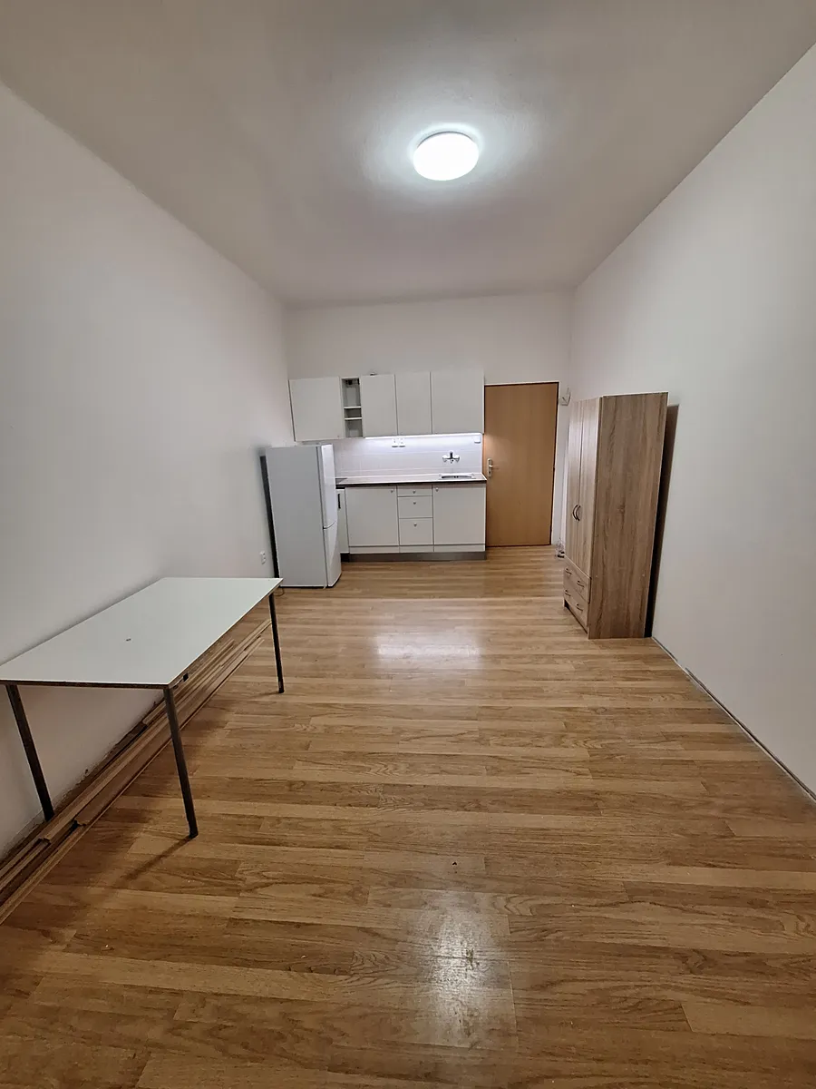 Pěkný byt 1kk, chodbička společná se sousedním bytem, koupelna s pračkou, sprchovým koutem a WC. Hlavní pokoj s kuchyňskou linkou se spotřebiči. Byt je v dobrém stavu. Nájem 14.500,- Kč + 1500 služby (společné prostory, voda, teplo) 1 osoba + 1000 kč služby/další osoba, elektřina převod na nájemníka (cca 800 Kč). kauce 18.000,- Kč, provize 16.000 Kč