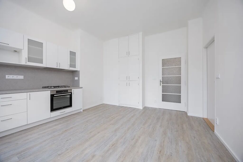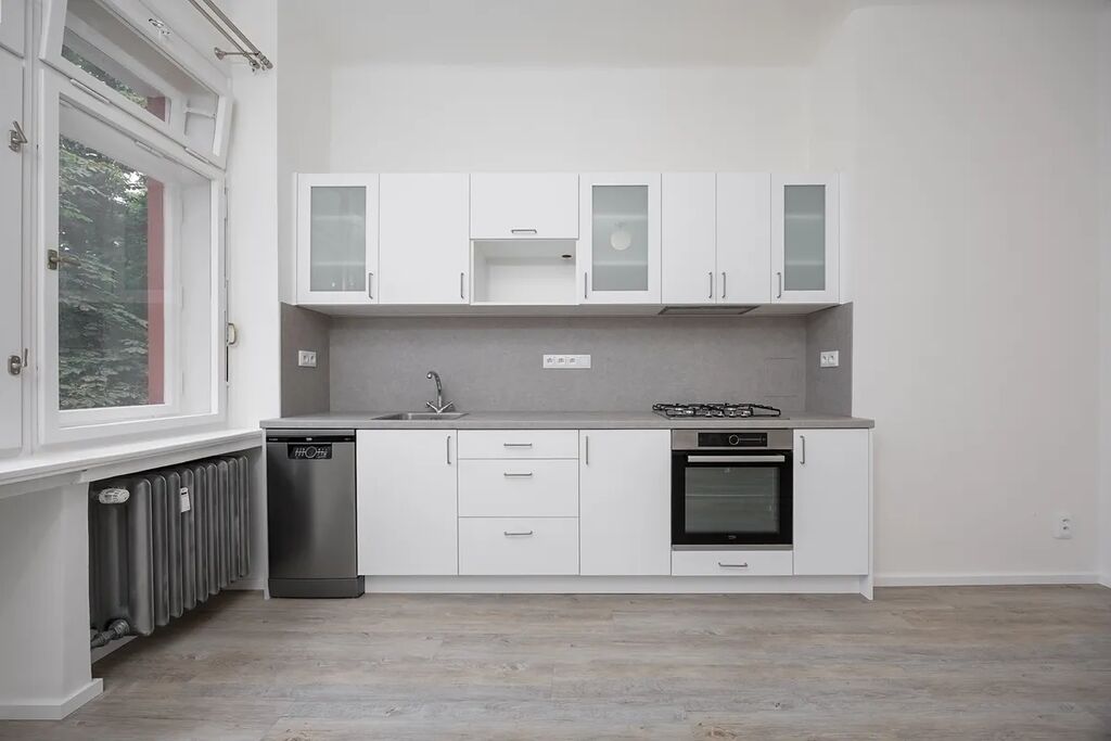 Vybavení: nová kuchyňská linka se spotřebiči (trouba, plynový sporák, digestoř, myčka), vestavěné skříně, koupelna s vanou a úložnou skříňkou