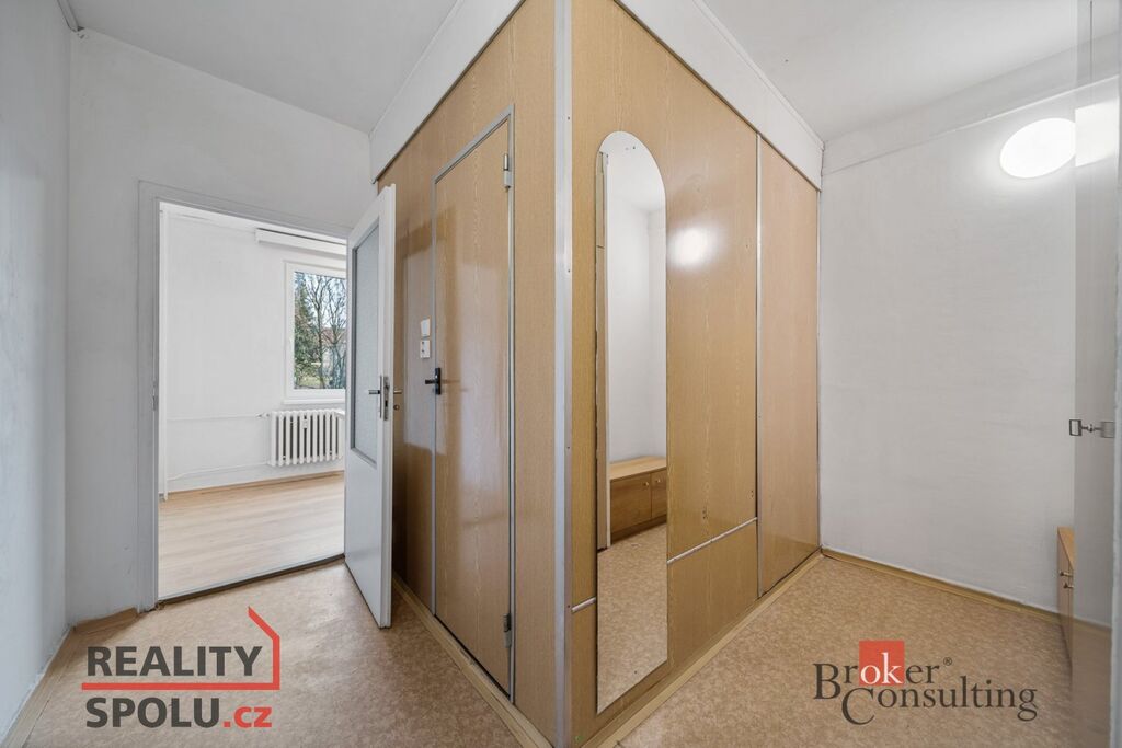 V bytě je také prostorné zádveří s vestavěnou skříní, které lze využít jako šatnu, umístit zde botník nebo vytvořit praktický úložný prostor. Koupelna je původní, ale plně funkční a splní svůj účel.