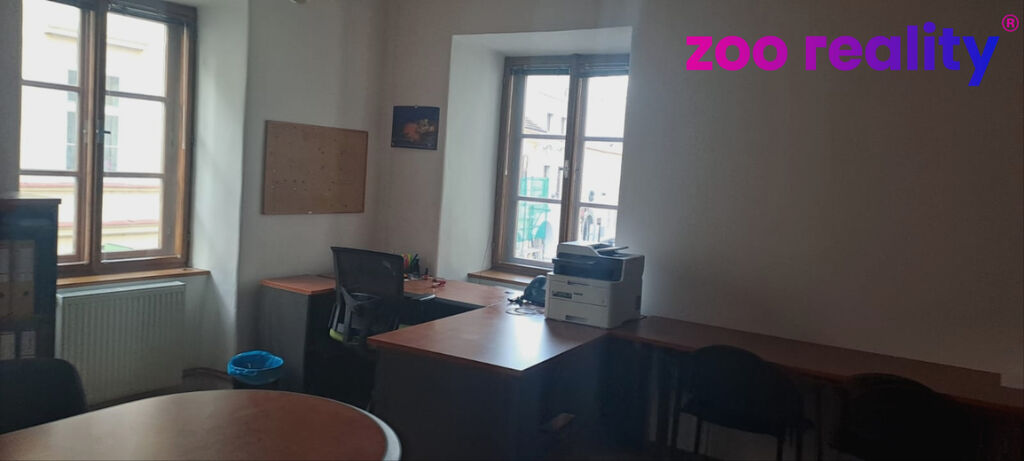 Nabízíme k pronájmu kancelářský prostor v centru města České Budějovice. Kancelář o celkové ploše 56 m2 se nachází v prvním patře rekonstruovaného a udržovaného historického domu. Kancelář se skládá ze dvou velkých místností s okny do Krajinské ulice. Za vstupními dveřmi je malá předsíň a úzká chodbička, která je nyní využívána jako archiv. Součástí kanceláře je koupelna se sprchovým koutem a WC, k dispozici je i kuchyňský kout. Kancelář je kompletně vybavena nábytkem a je zde i chladnička a mikrovlnná trouba. Vytápění a ohřev teplé vody zajišťuje plynový kotel. Volné od 1.3. 2026.