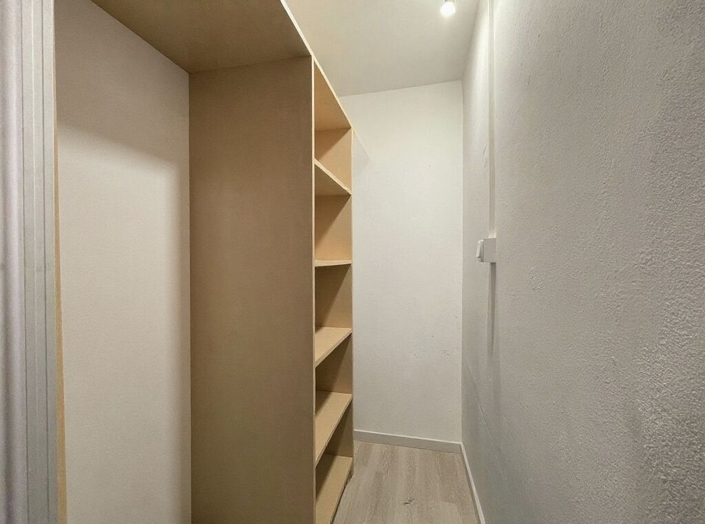 Celková výměra 45 m² je rozvržena prakticky a maximálně efektivně. Velkou předností je šatna šikovně skrytá za dveřmi vestavěné skříně – po jejich odsunutí se otevře překvapivě prostorný úložný prostor, který pojme vše, co má být „uklizeno, ale schováno“. Ideální řešení, které u této dispozice jen tak nenajdete.