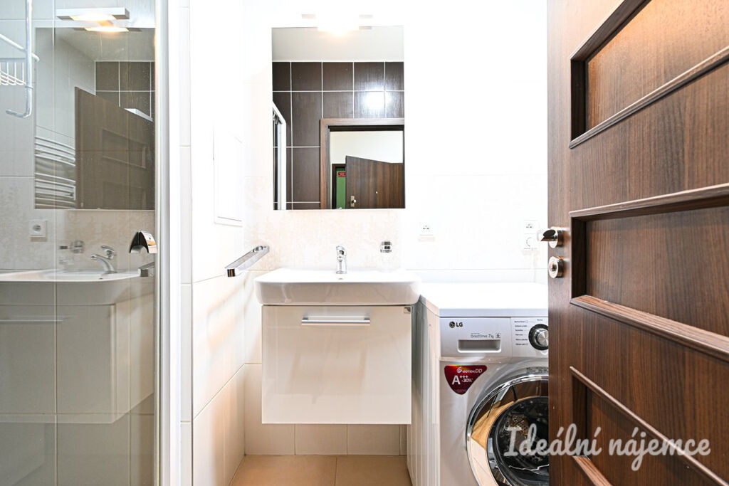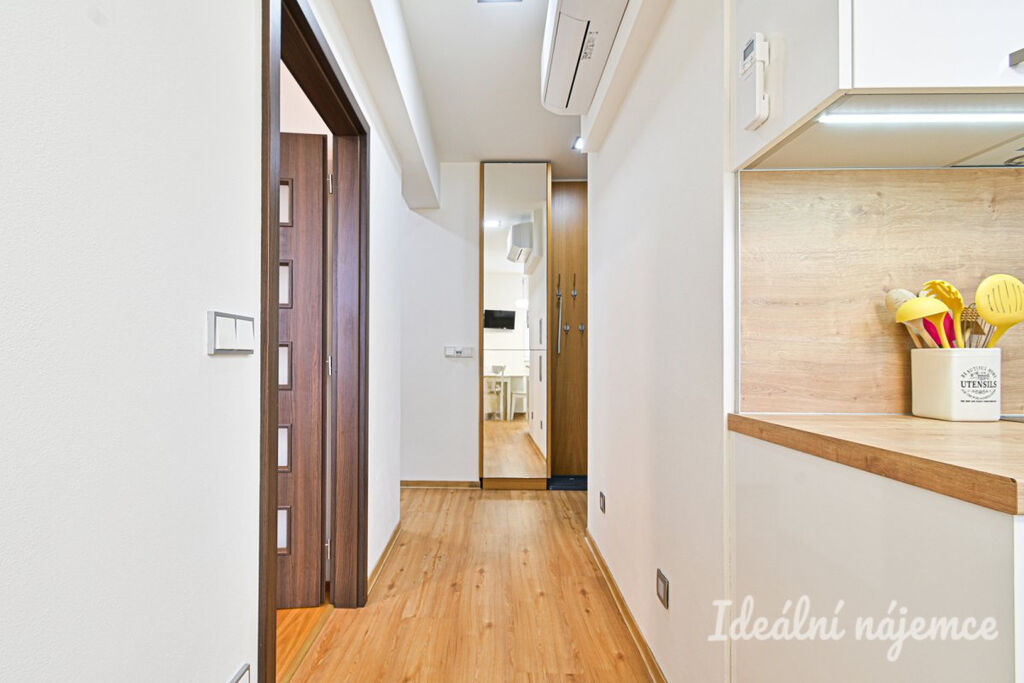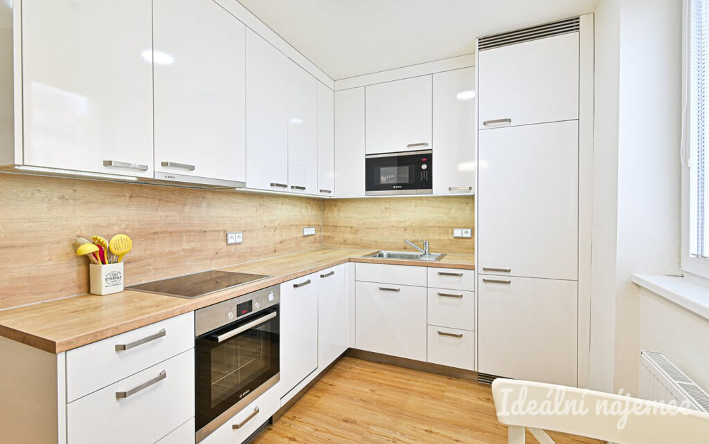 Byt se nabízí částečně vybavený dle fotografií. Kuchyně je vybavená linkou, troubou, myčkou, varnou deskou a lednicí. Obývací pokoj i ložnice jsou prostorné a světlé, s krásnou udržovanou dřevěnou podlahou. V koupelně najdeme sprchový kout, umyvadlo a pračku, toaleta je samostatná. Velká vestavěná skříň je v předsíni.