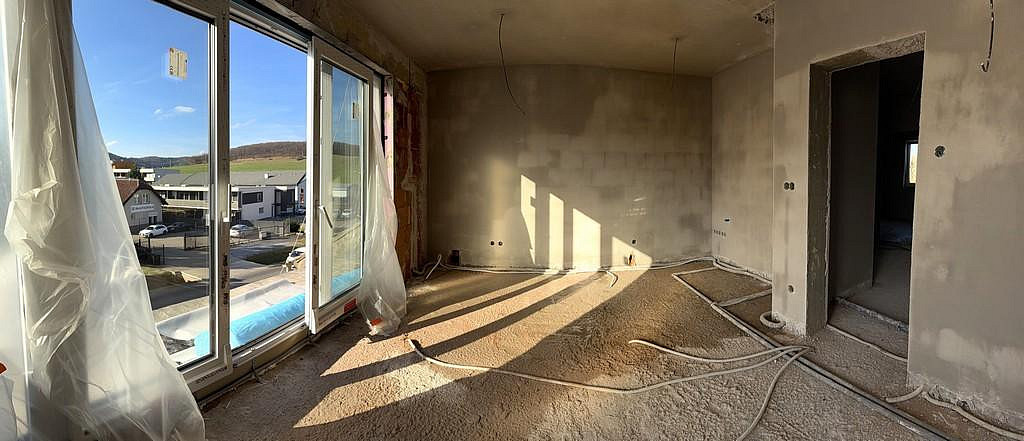 Pokud by Vás zajímala prohlídka, již nyní se můžeme do domu podívat. Právě byla dokončena střecha, v domě jsou okna, omítky, a proto není třeba virtuální prohlídky jako na projektech je zvykem, ale můžeme prostory projít a přesvědčit se, že právě toto je pro Vás bydlení, které hledáte.