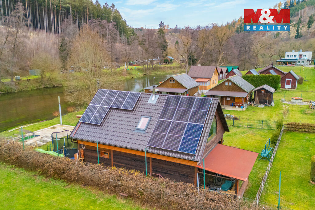 Malebná chatu po kompletní rekonstrukci, zateplená, k celoročnímu užívání v lukrativní lokalitě. Přímo u řeky, v klidné části obce Chřenovice. Tato samostatně stojící nemovitost se nachází na vlastním pozemku o rozloze 378 m² v těsné blízkosti řeky Sázavy a nabízí užitnou plochu na dvou podlažích. V přízemí se rozkládá obývací pokoj, plně vybavená kuchyň a koupelna (sprchový kout, WC, umyvadlo). Loftové patro je rozdělené komínem na dvě hlavní části, využitelné na spaní, pracovnu, apod. Další sprcha s přívodem teplé vody je na venkovní terase. Vytápění zajišťují krbová kamna s vodním výměníkem, rozvod podlahového vytápění, ohřev vody pak elektrický bojler. Na střeše je FVE, která vytvoří dostatek energie pro vlastní spotřebu i s přebytky. Chata je ideálním místem pro víkendové úniky z města, rybáře, jako letní sídlo i na zimní radovánky s komfortem rodinného domu. Okolí nabízí krásnou přírodu, klid, soukromí. Příležitost mít útulné místo k relaxaci nebo investici s možností pronájmu.