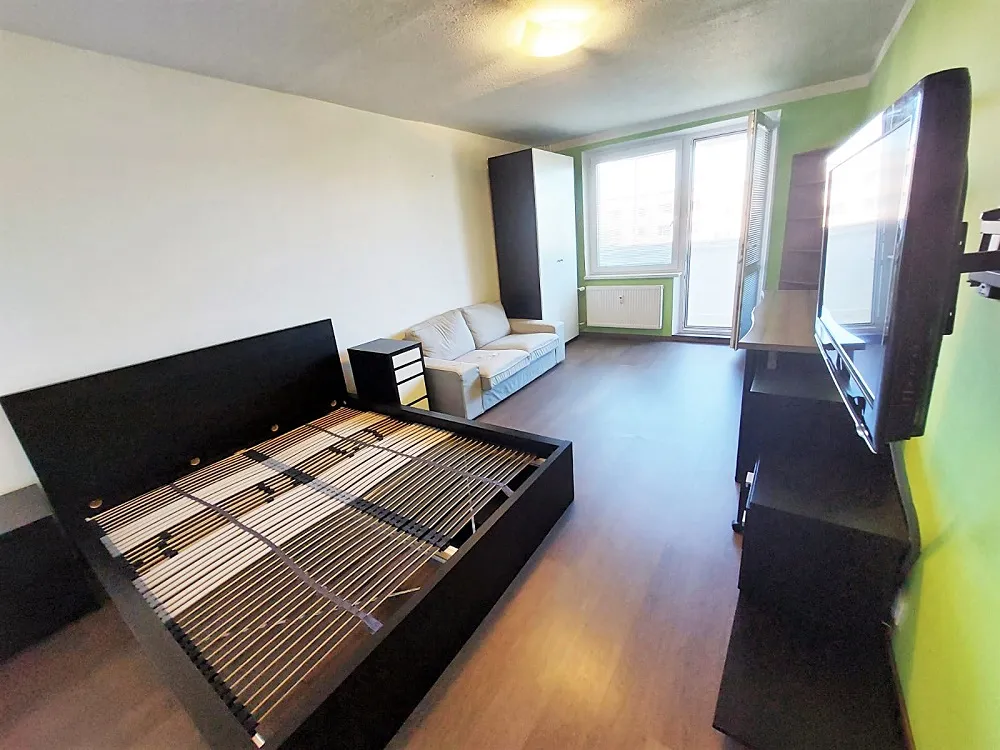 Dispozice – samostatný pokoj 20 m² se vstupem na zasklenou lodžii, kuchyně, předsíň, koupelna se sprchovým koutem společně s WC, k dispozici sklep.