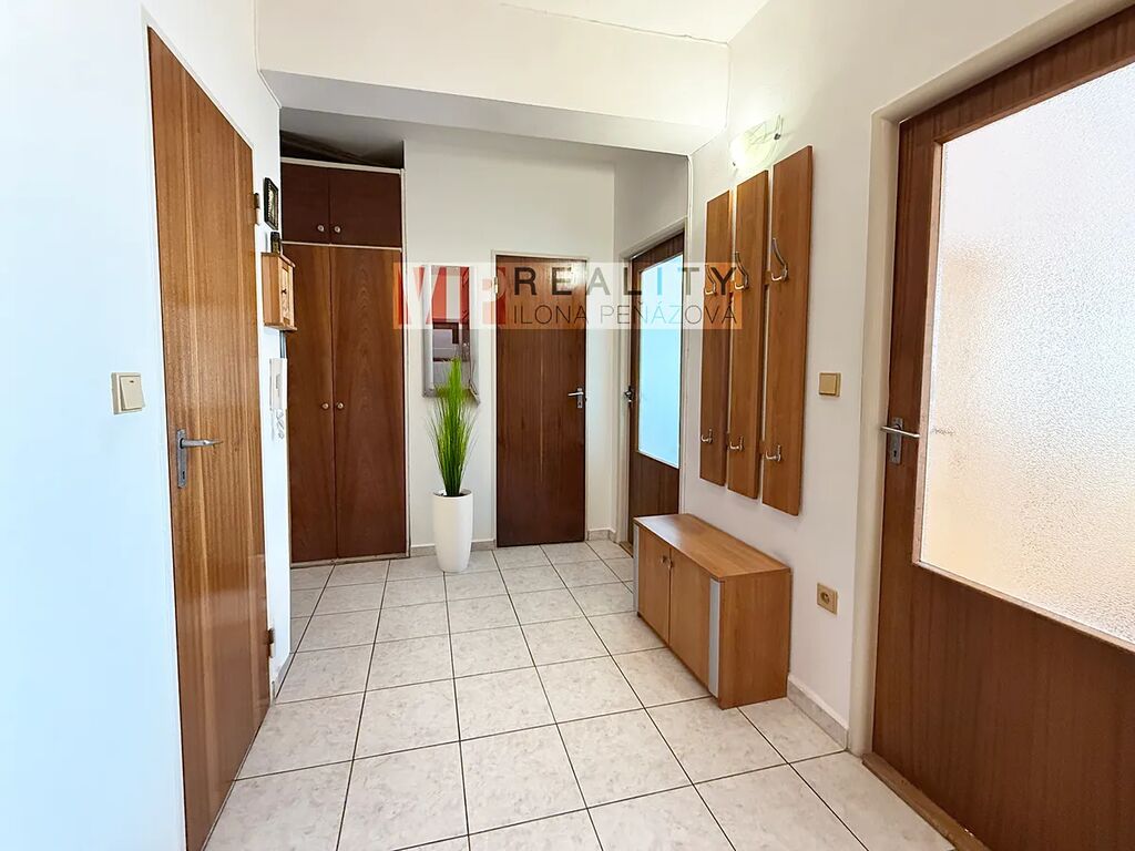 Hlavním benefitem je prostorná komora přímo v bytě – perfektní místo na domácí dílničku, šatnu nebo prostě velký úložný prostor, který se v bytech často hledá jen těžko.