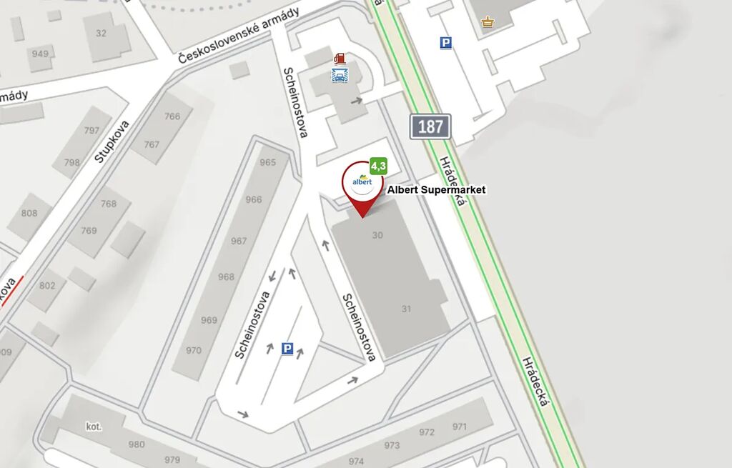 Nabízíme k pronájmu obchodní jednotku náležící k supermarketu Albert v Sušici. Prostor se nachází v budově Albertu, ale vstup do jednotky je samostatný, ze strany budovy.