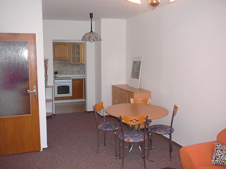 Byt je nabízen zařízený. V obývacím pokoji najdeme sedací soupravu s konferenčním stolkem, jídelní stůl se židlemi. Ložnice nabízí prostorné dvoulůžko a dostatek úložného prostoru ve skříních. Kuchyňská linka je vybavena sporákem, sklokeramickou deskou, digestoří a lednicí s mrazákem. V koupelně je k dispozici pračka, sprchový kout a toaleta.