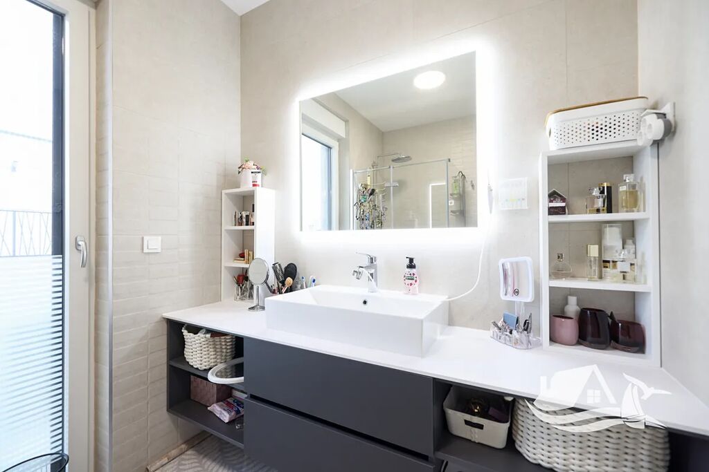 Celková čistá užitná plocha bez koeficientů je 196 m² a dům působí vzdušně, funkčně a velmi příjemně. Na zahradě čeká upravená zeleň, venkovní kuchyň s grilem na dřevo a vyhřívaný bazén 8×4 m se slanou vodou a automatickou regulací. Celý dům je vybaven podlahovým vytápěním i chlazením přes tepelné čerpadlo, kvalitní PVC okna mají elektrické rolety a fasáda z přírodního kamene dodává vile charakter i dlouhou životnost. Automatické zavlažování usnadňuje údržbu a celý dům se prodává kompletně vybavený, připravený k okamžitému užívání. Vlastnictví je zcela v pořádku.
